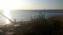 Weil mir vom langen Sitzen auf dem Boot nach drei Tagen der Rücken weh tut, gehe ich joggen und bekomme am Ostseestrand ein frisch gefangenes und auf dem Gaskocher gebratenes Dorschfilet geschenkt. Hier liegen etliche Segel- und Motorboote vor Anker. Drei Jollen meiner Größe wurden auf den Sandstrand gezogen, die Leute sitzen dazwischen auf Liegestühlen, trinken Wein und grillen Fisch. Zwei Tage hätte ich auch noch Zeit und ich frage mich, warum ich mich nicht zwischen Hiddensee und Dranske hindurch quetsche und so einen paradiesischen Schlafplatz, völlig unkompliziert - am Strand ansteuere! Am nächsten Tag fahre ich einhand im Zickzack gegen den Wind das schmale Fahrwasser entlang, versuche Fähren und andere Fahrgastschiffe im Slalom zu passieren. Mein Elektromotor verbraucht so viel Strom aus der kleinen Batterie, dass ich höchstens einen Kilometer damit voran komme und den Saft brauche ich