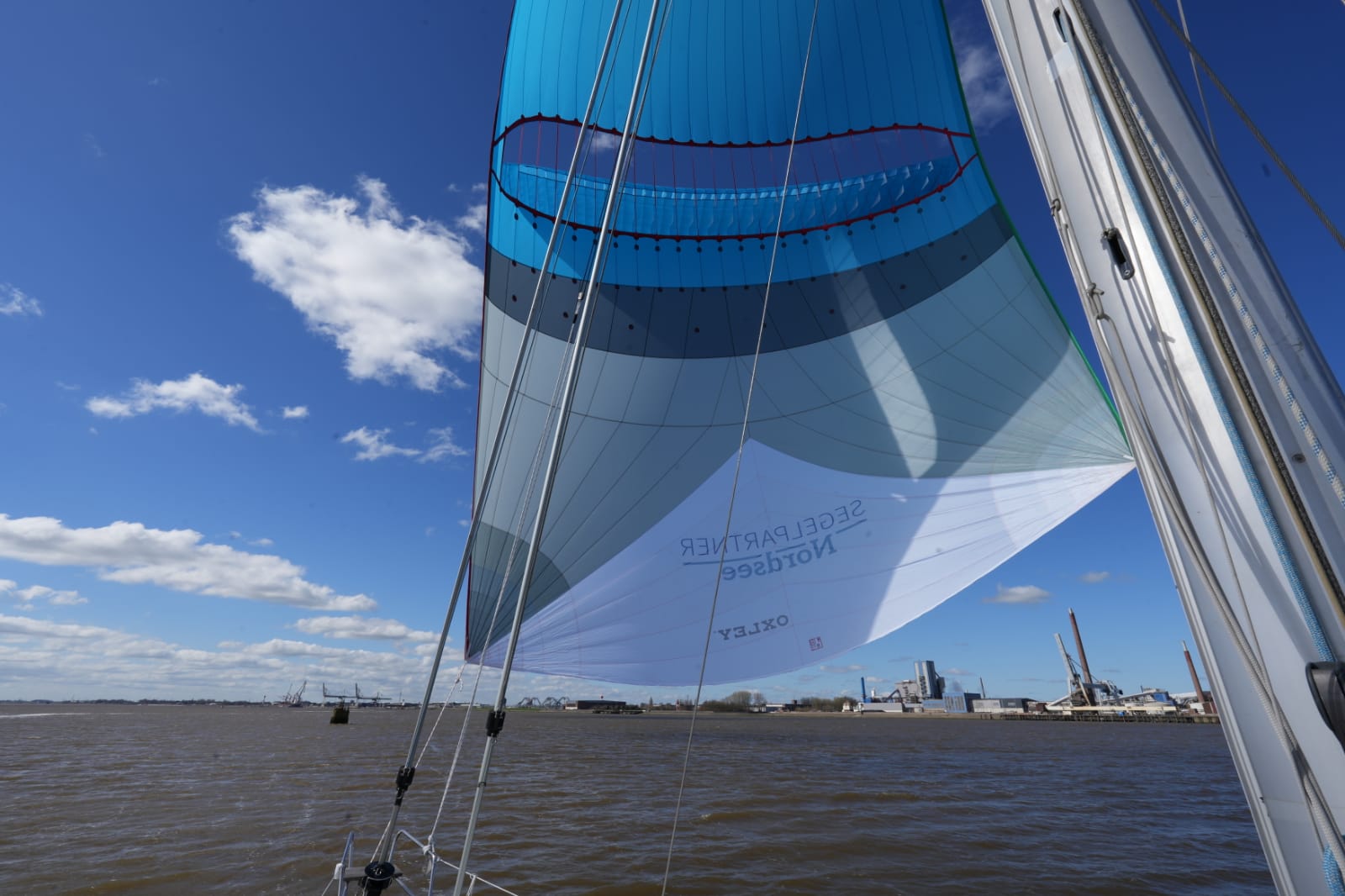 Am zweiten Trainingstag übten die Trainingsteilnehmer das Schleusen sowie das Ankern im Strom und das Schwachwindsegeln auf der Weser mit einem Oxley-Segel. Dies ist ein spezielles Leichtwindsegel, das die Eigenschaften eines Gennakers und eines Spinnakers kombiniert. Besonders an diesem Segel ist der integrierte Flügel, der aus dem Gleitschirmflug stammt. Die Bedienung des Segels erfordert Aufmerksamkeit und Konzentration, da es bei Änderungen der Windrichtung schnell einfällt und der Segler zügig reagieren muss.